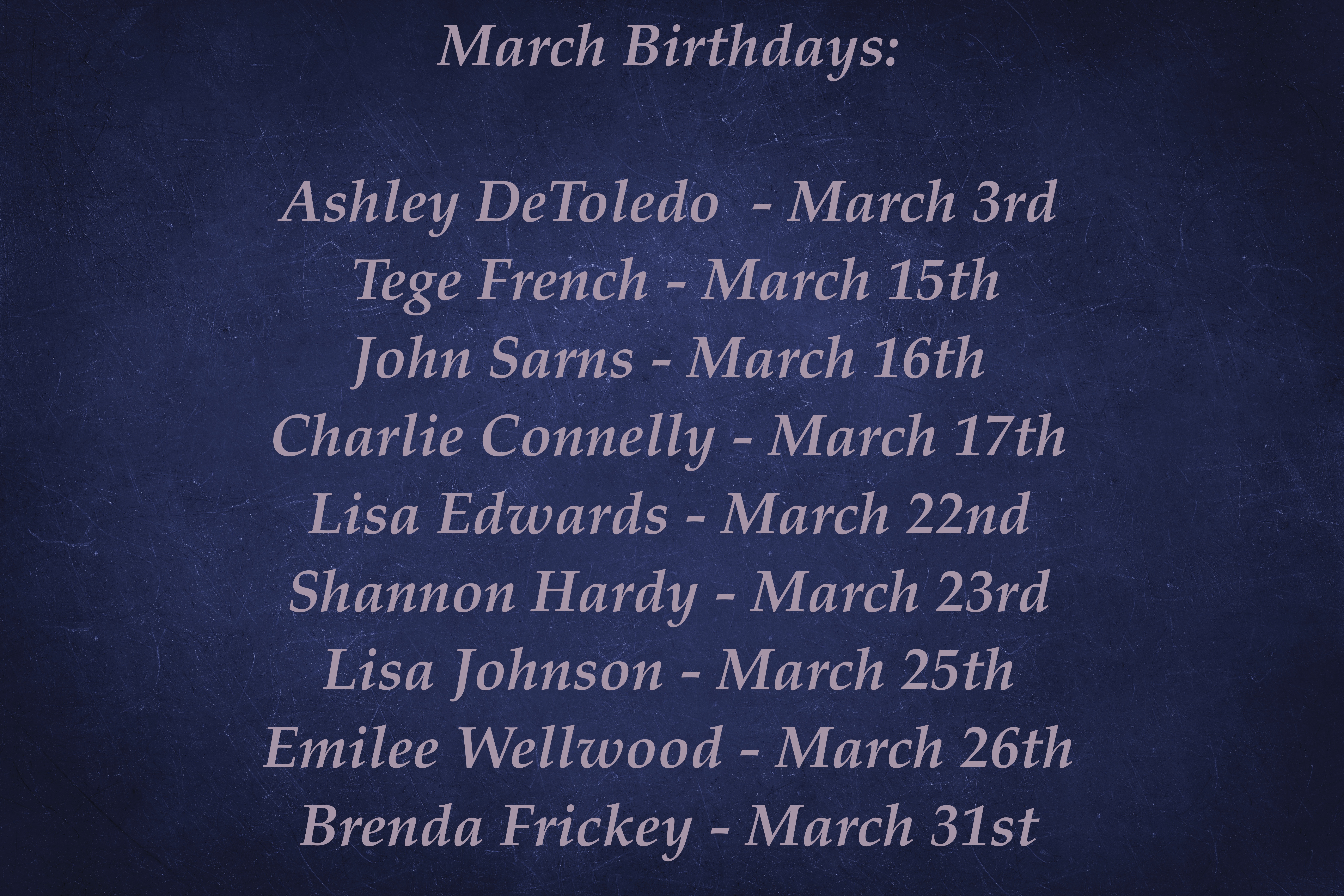 Happy Birthday to everyone who has a birthday in March